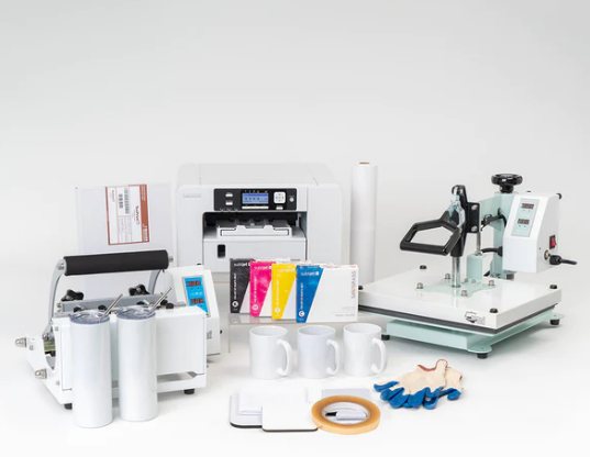 A sublimation printer & tools create full color heat transfer images that bind with materials to create seamless and long-lasting image transfers to sublimation ready materials.